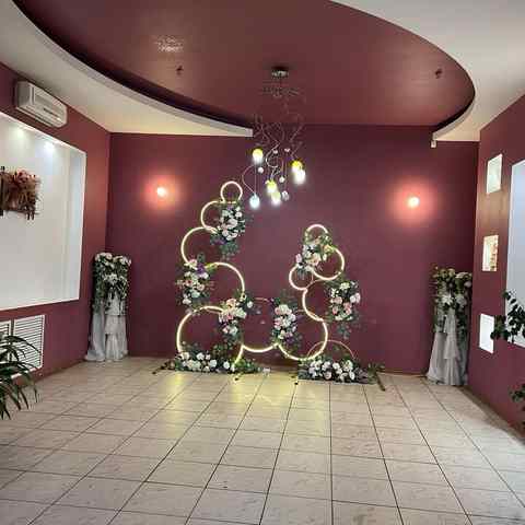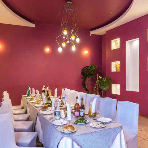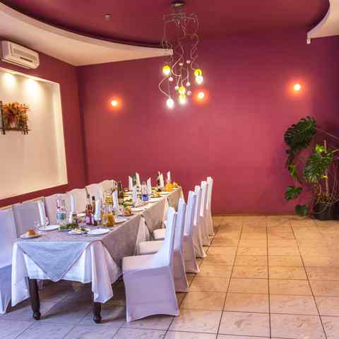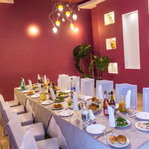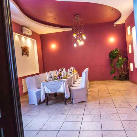 Максимальное количество гостей — до 70 человек, минимальное для закрытия кафе — банкет на 35 персон. В залах возможна свободная расстановка столов и есть место для танцпола. Имеется своя профессиональная звуковая аппаратура. При необходимости в кафе предоставляют украшения для зала. Ведение и музыкальное сопровождение для торжеств заказывается дополнительно.